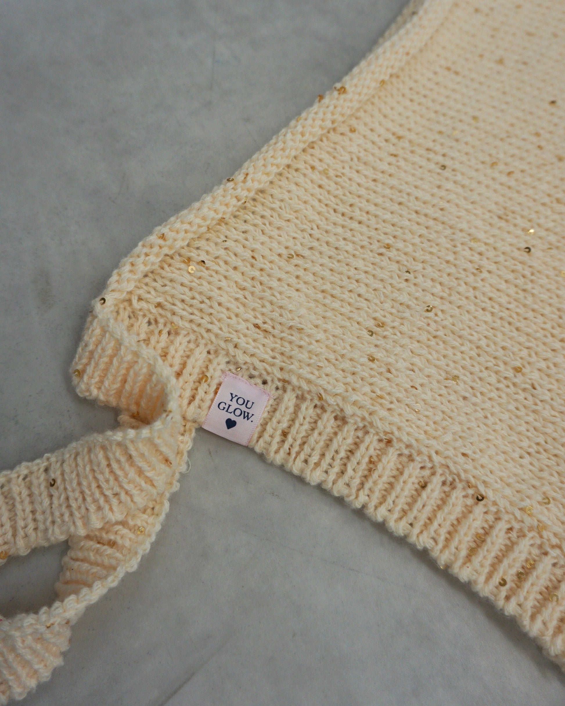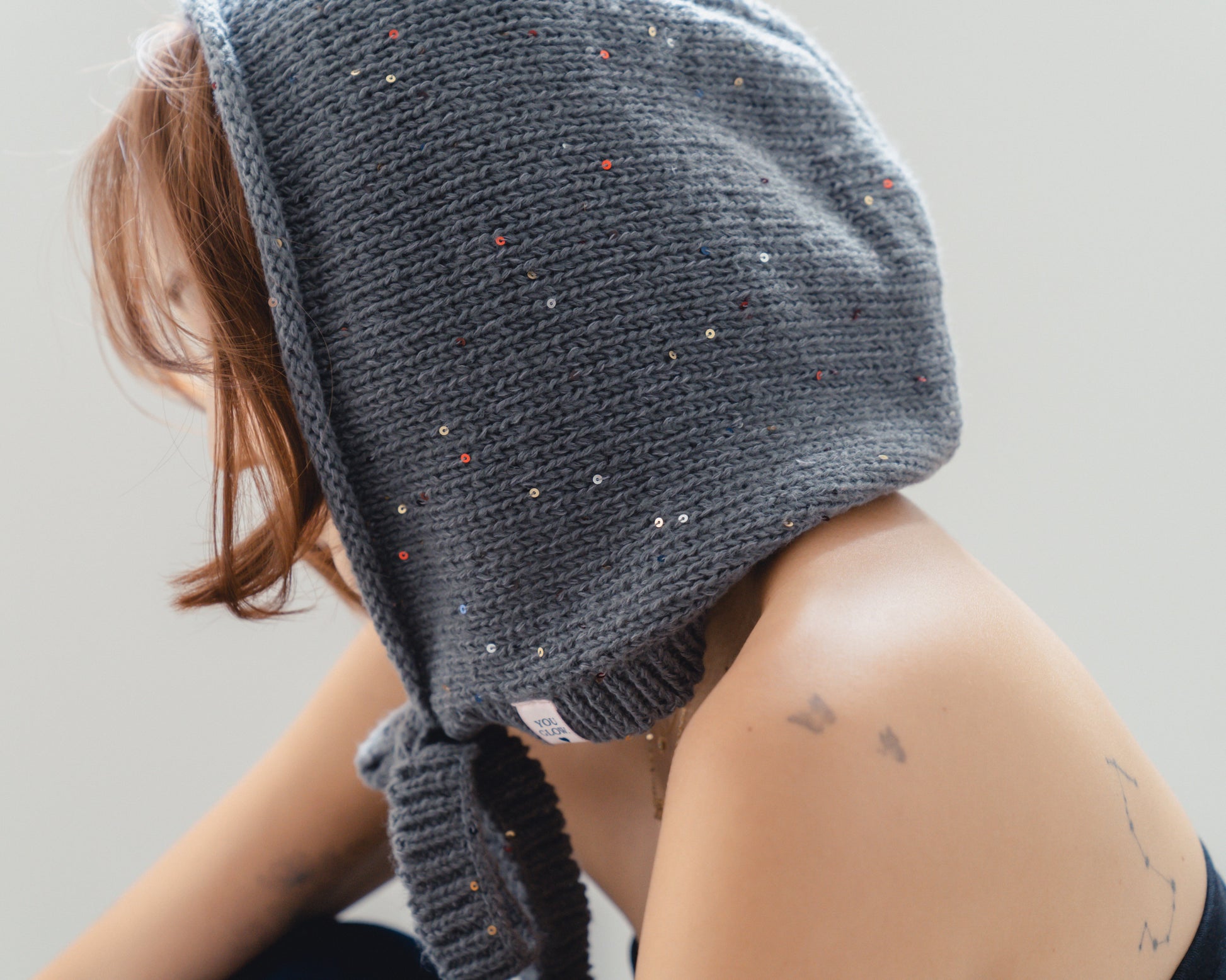 きらめくスパンコールが織り込まれた、ニットビーニー。